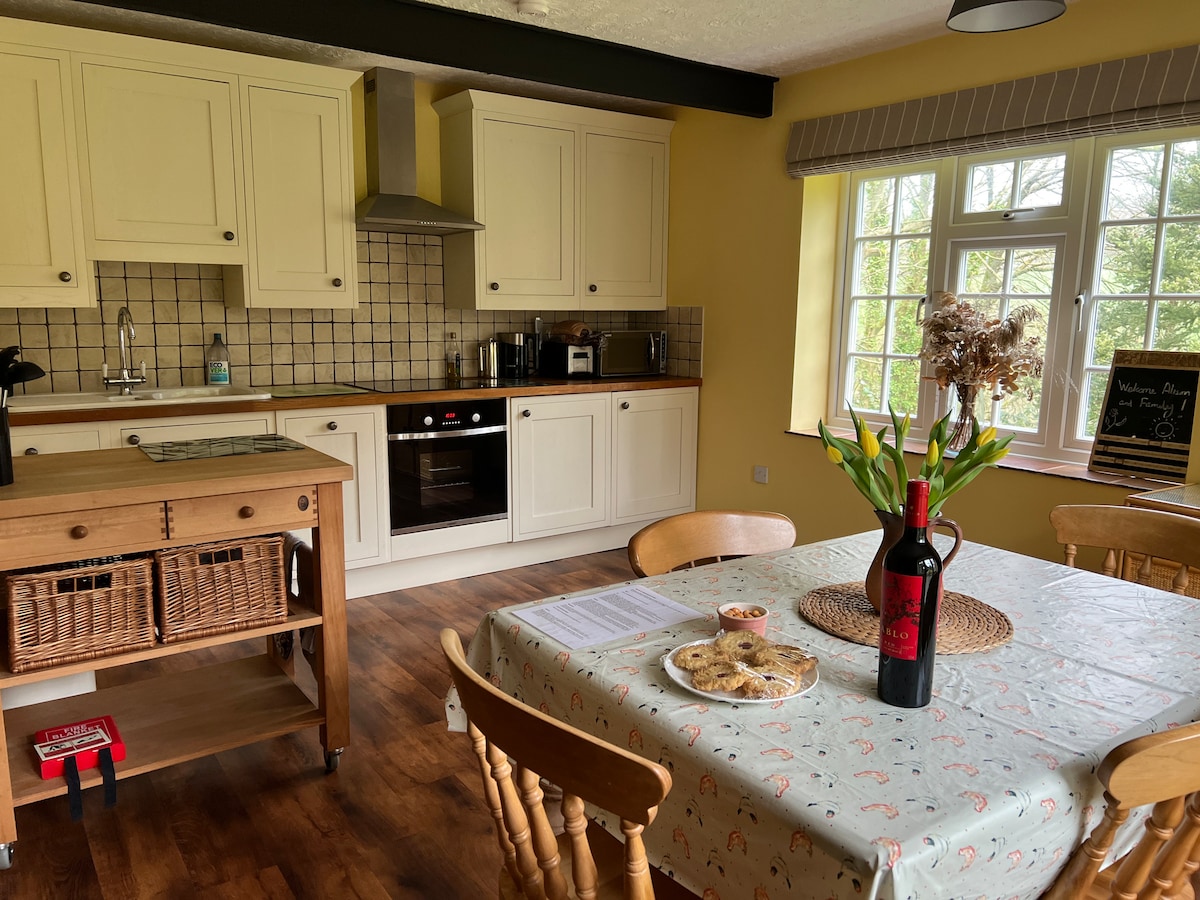 Preuređena staja na 40 hektara zemlje. Dom daleko od doma prepun knjiga, igara i igračaka. Lako prima najmanje 10 ljudi udobno. Bašta, jezerce, šuma i parking su isključivo vaši tokom boravka. Živimo u uličici pored ambara. Tako da imate privatnost. Na farmi imamo kokoške, patke, ovce i svinje. 5 minuta vožnje od J28 na M5. 20 minuta od centra Eksetera. Nije blizu dobrih plaža, zato nas ne birajte za odmor na plaži. Nema spa centra ni đakuzija.