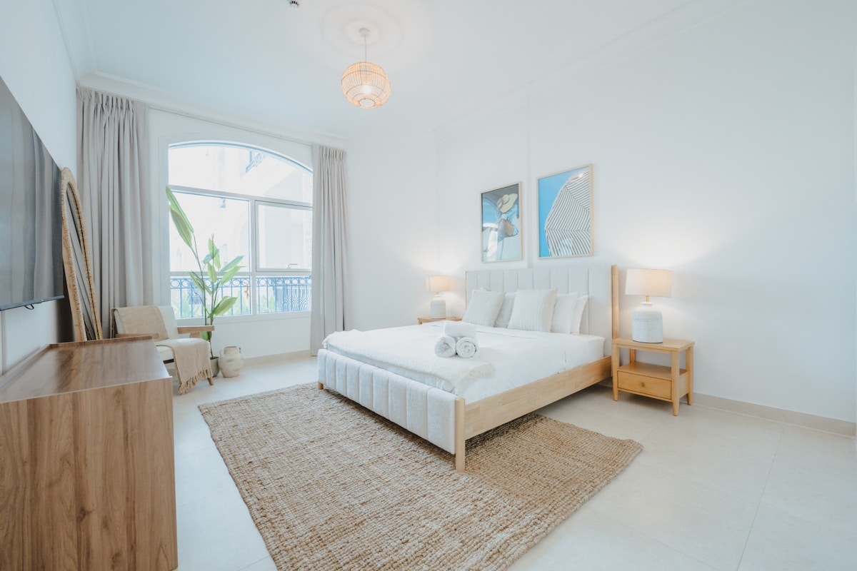 Less than a 1 minute walk from sandy shores, you will enjoy stunning unobstructed views of the mangroves day and night. Located in Al Reem Island, it is far away from the busy city yet close enough to Abu Dhabi’s hot spots. The home has been curated with tropical colours and décor in mind while maintaining the elegance of white linens. The home and linens are always cleaned by professionals for your utmost comfort. It has 2 bedrooms and 2.5 bathrooms and a fully equipped kitchen.