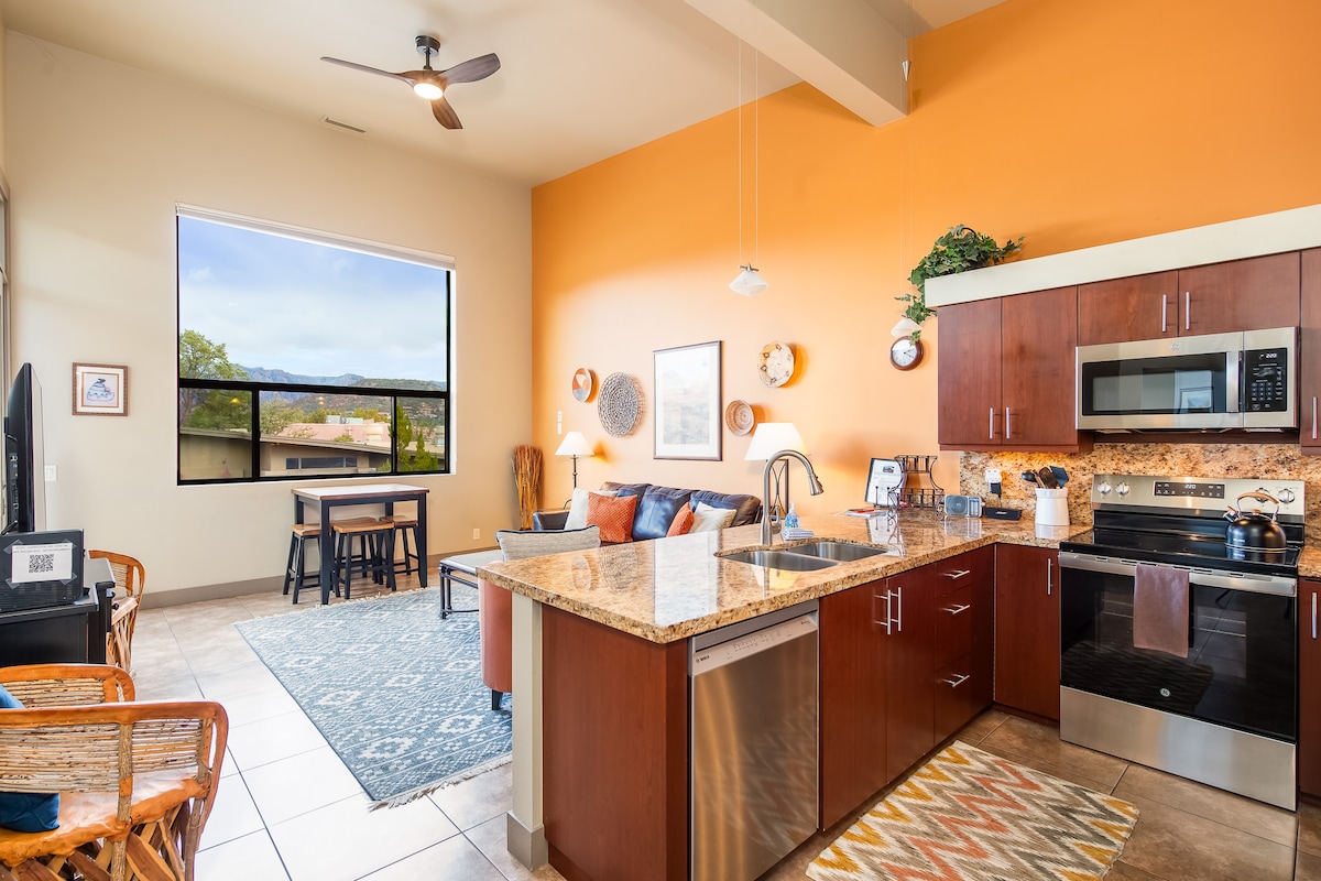 Čist, prostran i umjetnički stan u potkrovlju za 2 ili 3 osobe. Sa 400 kvadratnih metara, ima dovoljno prostora za opuštanje nakon avantura u Sedoni. Uživajte u zadivljujućem pogledu na zalazak sunca na Crvene stijene sa veličanstvenih prozora. Samo nekoliko koraka vas dijeli od kafe, restorana i namirnica. Opustite se uz luksuzan namještaj, plišane ćebad i zanatsko uređenje, potkrovlje 2 ima svu osnovnu opremu za vašu udobnost. Bonus: prikladno parkirajte na predviđenom natkrivenom mjestu.