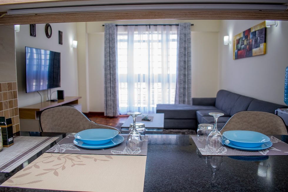 This entire stylish apartment is modern, spacious & comfortable, with one bedroom & en-suite bathroom, luxurious King size bed, eloquent dining room, bedroom & lounge Netflix-TV, balcony, kitchen and washing machine area. All amenities provided, including unlimited Fast WiFi and business facilities. Situated in a quiet leafy suburb, but also conveniently close to Westgate, Sarit and Lavington shopping malls, restaurants, business hubs, CBD and few meters walk away from Westlands nightlife.