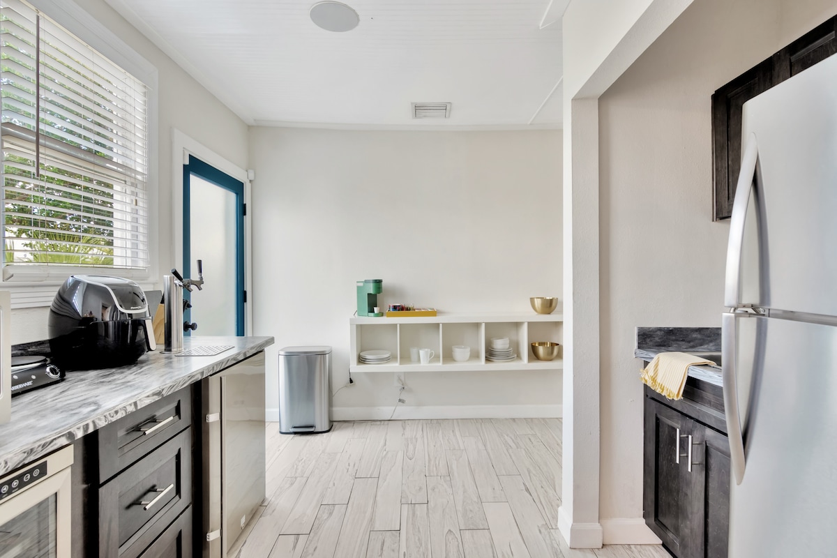 Mirna istorijska kuća ispunjena umjetnošću, 2 bloka od živopisne 7. avenije Ibor. 2 spavaće sobe i 2 kupatila. Dovoljno blizu da prošetate do uzbuđenja koje Ibor nudi i savršena udaljenost za odmor kada budete spremni da se opustite. Kratka šetnja od 5 minuta do istorijskog besplatnog trolejbusa, koji povezuje cijeli Ibor sa centrom Tampe i Kanalsajd. Idealna lokacija za istraživanje svega što Tampa nudi. Posjetite moj vodič da biste vidjeli sve moje preporuke za nevjerovatnu hranu I piće.