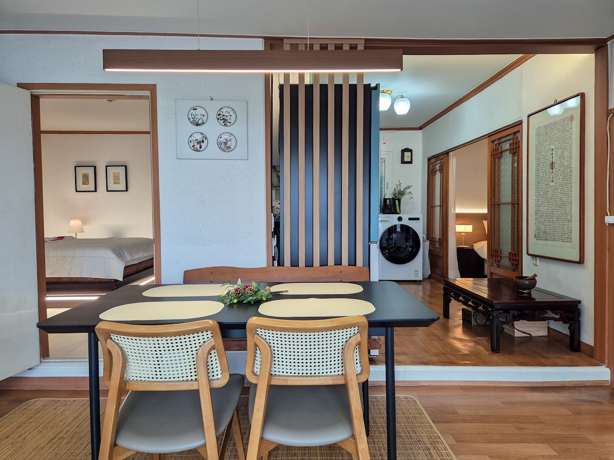 Ovo je rijetka prilika da odsjednete u kulturno bogatoj četvrti Samcheongdong, u čistom, modernom, prostranom dvospratnom stanu u potkrovlju sa spektakularnim pogledom na palatu Gjeongbukgung. *Glavna spavaća soba je na glavnom spratu, sa bračnim krevetom i punim ormarom. *Druga spavaća soba je slatki tavan na gornjem spratu, do kojeg se dolazi spiralnim stepenicama. *Dodatna soba u potkrovlju je takođe na gornjem spratu.
