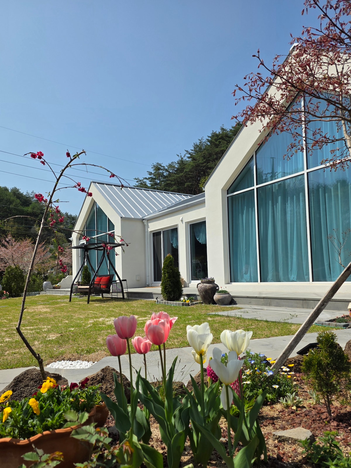 Ovaj smještaj se nalazi u Vichon-ri, Gangneung. * Bez kućnih ljubimaca, ovo je zona bez djece. * Spoljašnji prostor se dijeli sa domaćinom. Potrudićemo se da gosti mogu udobno da ga koriste, ali može doći do preklapanja ili susreta s domaćinom, pa vas molimo da rezervišete samo ako ste u redu. Kuća 🩵domaćina i zgrada su odvojene, ali travnjak se dijeli sa domaćinom. 🩵Doručak je uključen (8:30, 9:30 1) Birajte između sendviča s otvorenim škampima i francuskog tosta (1 meni po osobi) - Postavite do jedan dan unaprijed kada koristite roštilj. Cijena je 30.000 vona. * Napravićemo vatru na ugalj. Roštilj, rukavice s mrežom za meso na ugalj itd. Možete da koristite i spoljni prostor kafića koji se nalazi🩵 odmah pored. (Nije dostupno tokom upravljanja travnjakom) - To se ne može mijenjati 4 dana prije prijave -Gangneung Toll Gate u roku od 5 minuta automobilom -Convenience store, Hanaro Mart, etc. are within 10 minutes by car. -10 minuta automobilom od autobuske stanice Gangneung Express