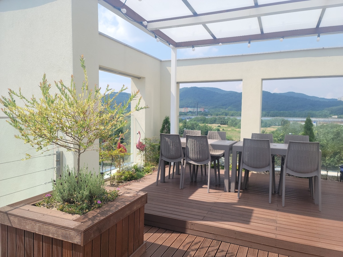 Blooming "B" 9인가능/넓고예쁜거실다락방/캠핑바베큐/신축/넷플/비대면/발코니