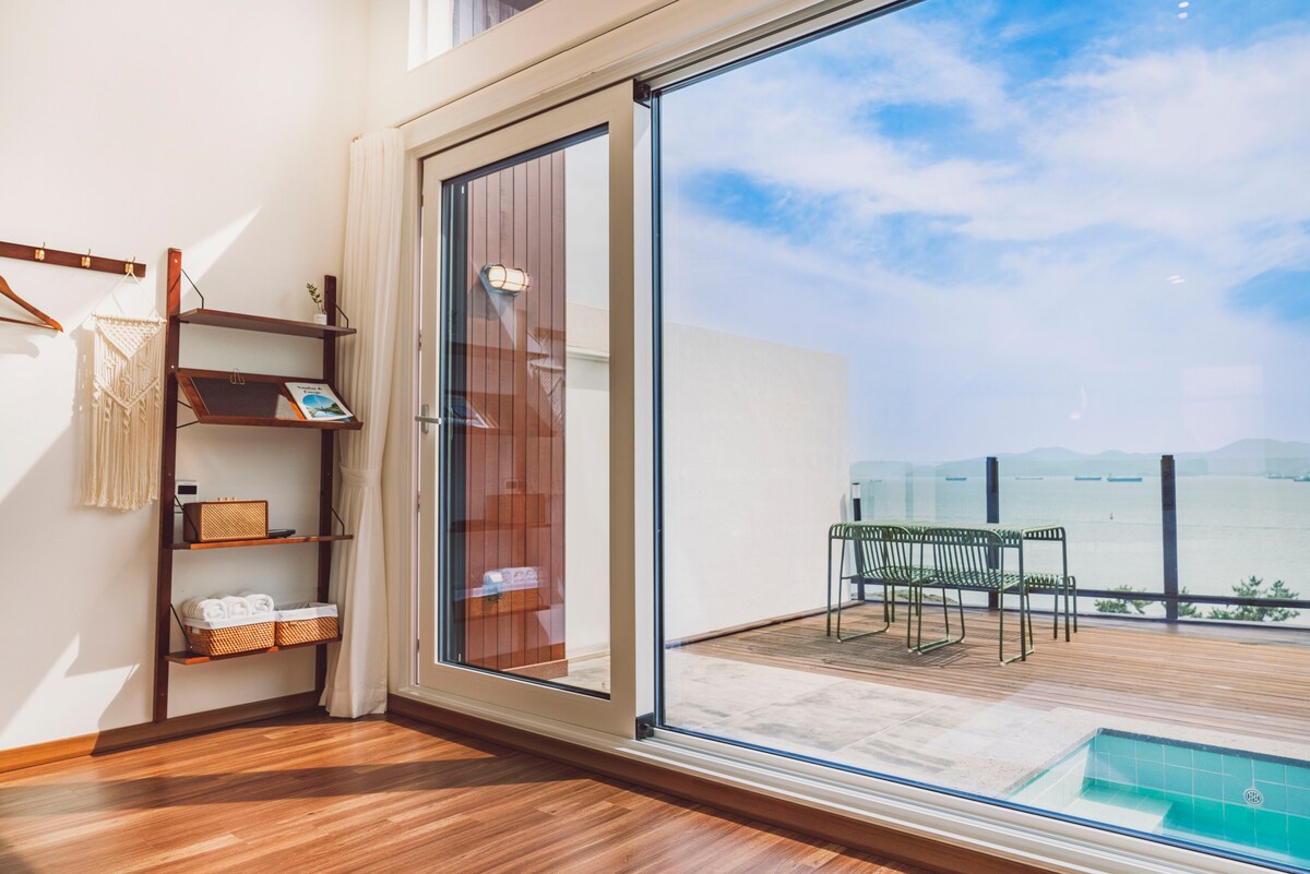 Šamu - Izvanredna soba sa pogledom na zelenu vodu Južnog mora dok spavate u krevetu