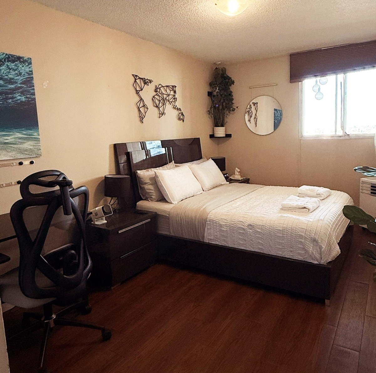 Dobro došli u našu elegantnu urbanu oazu u centru Toronta, smještenu pored živahnog okruga Jorkvil i prestižnog Univerziteta u Torontu. Uživajte u savršenom spoju luksuza i praktičnosti u našem moderno namještenom stanu koji se može pohvaliti zadivljujućim pogledom na grad. Istražite poznate šoping, restorane i kulturne atrakcije na samo nekoliko koraka. Naš dom za 4 osobe ima kauč na razvlačenje i plišani dušek veličine bračnog kreveta u spavaćoj sobi.