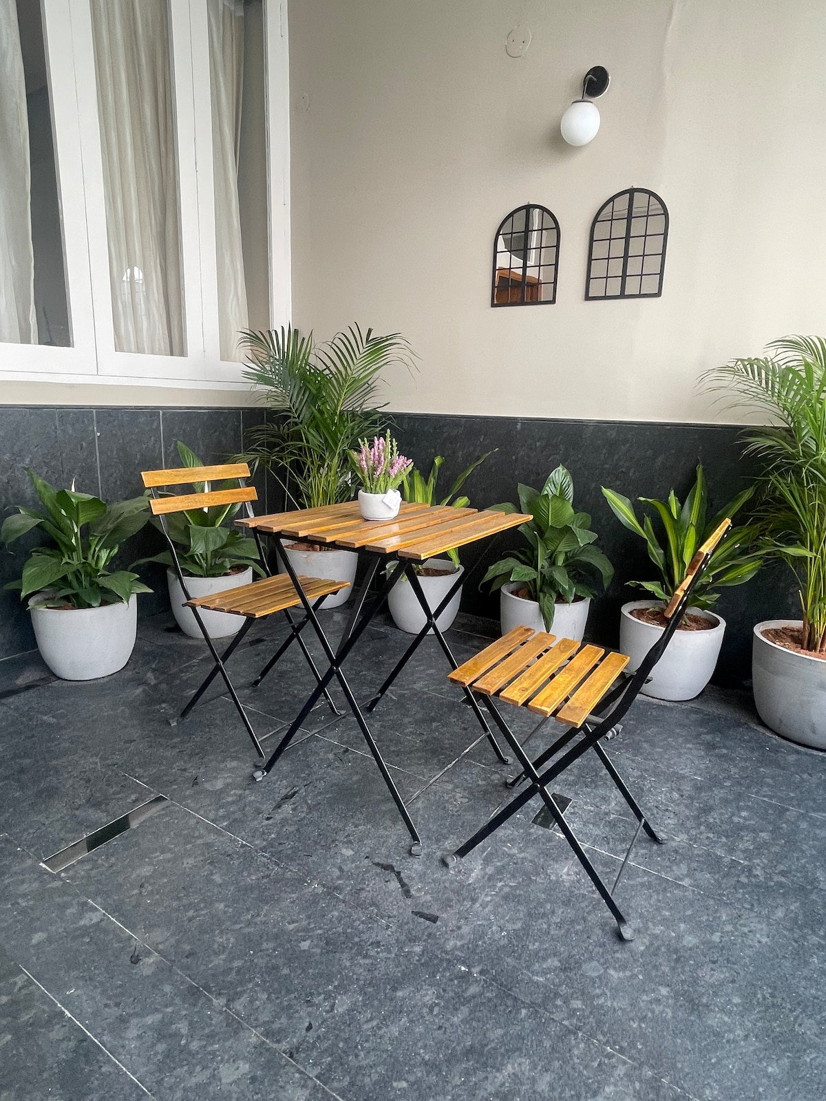 Dobro došli u The Terrace, moderan dvosoban stan u mirnom, zelenom i veoma bezbednom području. Savršeno za porodice, parove i samce. Dom je udaljen 30–35 minuta od aerodroma, sa lakim pristupom Uberu, Oli i obližnjim restoranima. Sve glavne aplikacije za dostavu hrane rade bez problema i rado ćemo podeliti naše najbolje preporuke. Nalazite se na 20–25 minuta od tržnog centra GVK, na 2 minuta od najbliže bolnice, odmah pored prelepog parka za jutarnje ili večernje šetnje. Samostalna prijava za potpunu praktičnost tokom boravka.