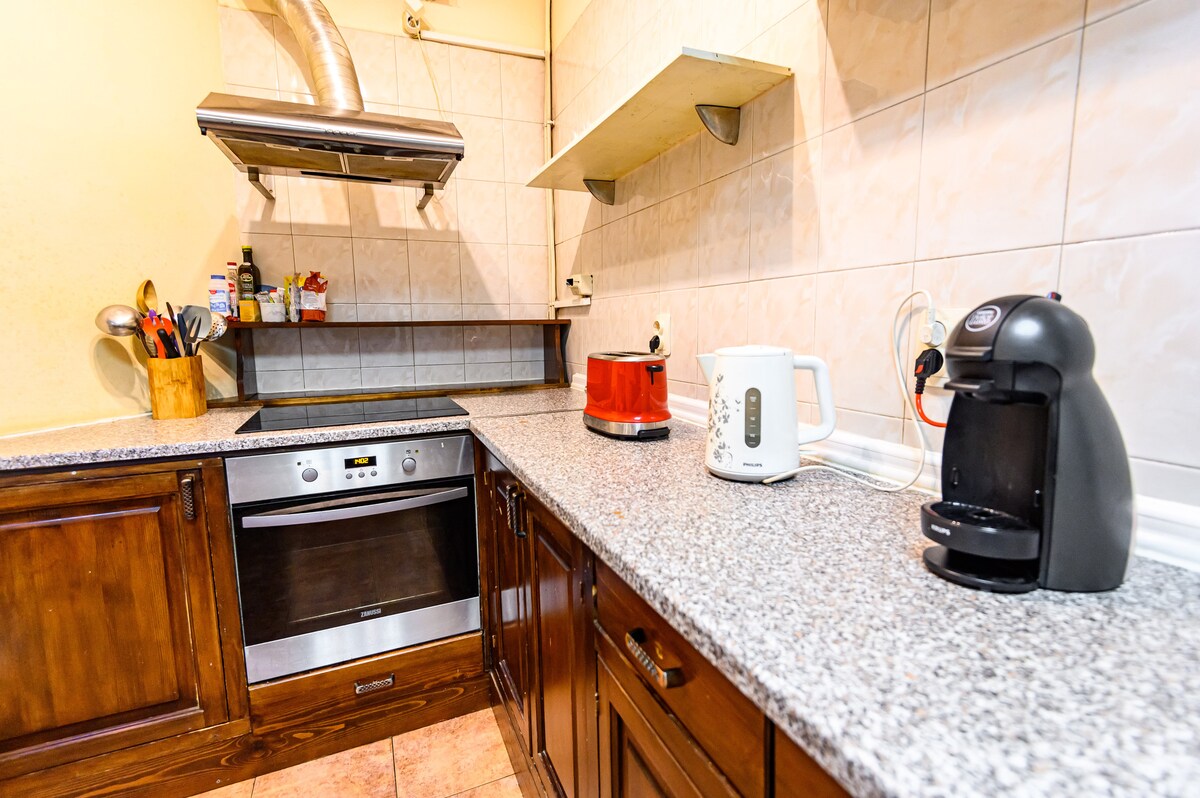 Lovely, quiet, and cozy place. Apartment located in the centre of the city but also in the forest. A smart control of the equipment for as much comfort as possible. This place can guarantee your desired vacation. It has two private rooms, a bathroom, a terrace, and a small yard. The kitchen has all the essentials for both short and long-term stays. An eco path leads to some of the most beautiful spots in the city.