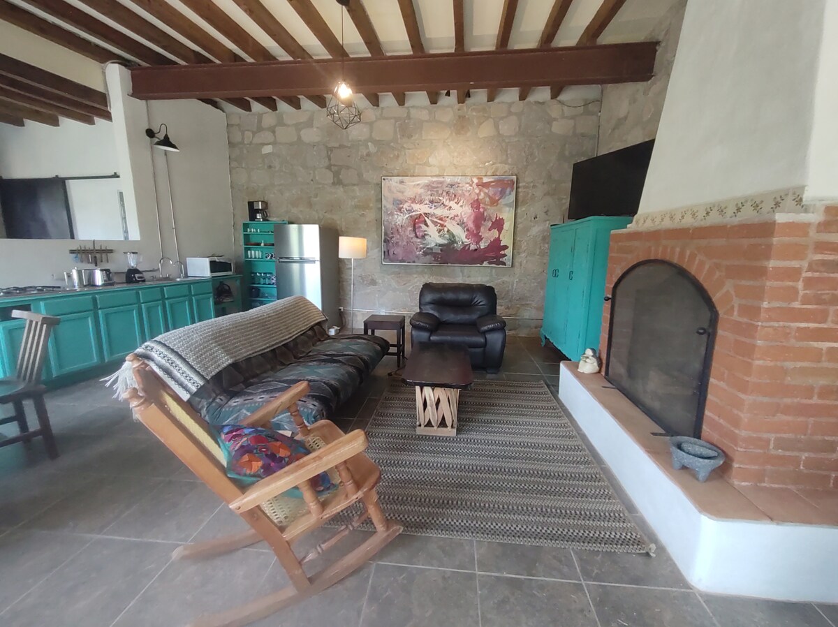 Opustite se u ovom mirnom i bezbjednom smještaju na samo 20 minuta od centra grada Gvanahuato. Privatnost i udobnost sa spektakularnim pogledom na Sieru. Prostrano šumovito imanje u potpunosti ograđeno roštiljem, TV-om/Wi-Fi mrežom, 3 minute hoda od puebla sa restoranima i prodavnicama koje prodaju lokalne rukotvorine/proizvode. Za grupe do 8 osoba, iznajmite smještaj zajedno sa susjednom kućom Casita la Ranita (kapija se može otvoriti između objekata). Psi su dobrodošli.