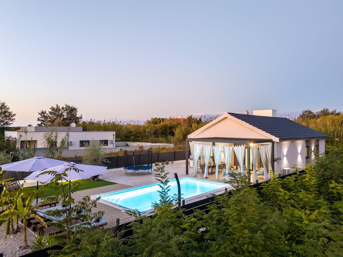 Ova jedinstvena vila nalazi se u blizini plaže i centra grada. Ovo je savršeno mesto da provedete nezaboravan odmor sa porodicom i prijateljima. Naši gosti mogu da se opuste u privatnoj sauni i đakuziju. Kompletna vila je klimatizovana. Vila se sastoji od tri spavaće sobe , a jedna spavaća soba ima sopstveno kupatilo, dnevnu sobu sa trpezarijom i kuhinju. Naš objekat je udaljen 30 minuta vožnje od aerodroma i 15 minuta vožnje od Zadra. Naši gosti imaju besplatan WI-FI, parking mjesto i roštilj.