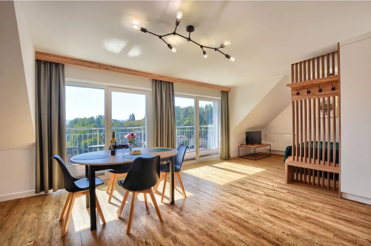Udoban, moderan apartman u Vili Wierch, u Krinici Zdroj. Stan je odlično pozicioniran - 15 minuta hoda do šetališta Bulwary Dietla, nasuprot biciklističko-pešačke staze. Bogata oprema koja će obezbediti odmor za svakoga (mašina za pranje sudova, mašina za pranje veša, rerna, TV, kompletna kuhinjska oprema, klimatizovani dnevni boravak, roletne na prozorima). Stan je namenjen za 4 osobe (dva bračna kreveta). Stan je dizajniran da vam služi i za odmor i za rad na daljinu.