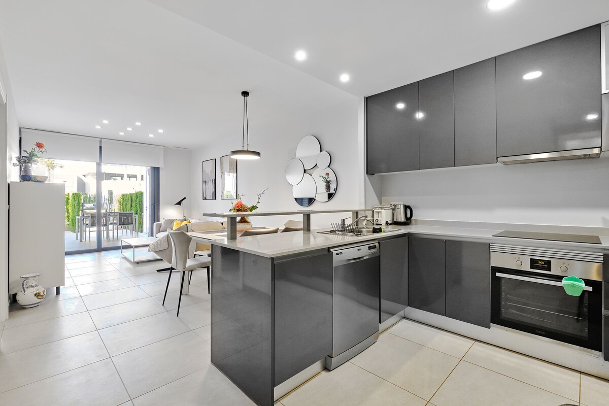 Dobro došli u stan Arbequina u selu Flamenka - samo nekoliko koraka od Plaja Flamenke, plaže La Zenija i tržnog centra Flamenka Bulevar na otvorenom. Ovaj elegantan stan prikladan za porodice ima pogled na dvorište i posebno sigurno podzemno parking mjesto. Uživajte u više bazena, hidromasažnim kadama, teretani, sauni i opuštenom baru. Uz sadržaje u stilu plaže, kupovine i odmarališta u blizini, to je savršeno mjesto za opuštanje, istraživanje i uživanje u stilu Kosta Blanke.