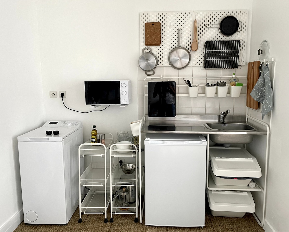 ✨Prekrasan klimatizovani stan sa jacuzzijem, saunom i terasom koji se idealno nalazi na periferiji Pariza, Gare RER C 100m i LINIJOM metroa 7 do 5 minuta hoda🚶. Na raspolaganju: - privatni đakuzi i sauna - Spavaća soba sa BRAČNIM KREVETOM (180 cm) - Opremljena čajna kuhinja: frižider, indukciona ploča za kuvanje, mikrotalasna rerna, NESPRESSO mašina, čajnik - Terasa u čahuri - Kupatilo, tuš kabina u nivou poda - Obezbeđena posteljina, kućni ogrtači i peškiri.