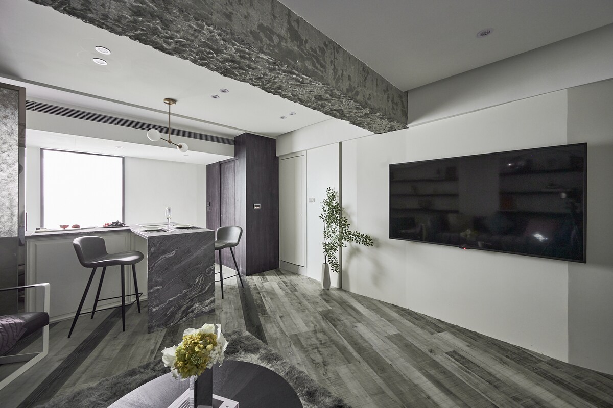Renovirana garsonjera na samo 2 minuta od stanice Guting MRT. Može da spava 4 osobe na udobnom krevetu od 1,5 m i kauču na razvlačenje. Ogroman prozor sa predivnim pogledom na grad Tajpej – savršeno za rad uz čaj ili opuštanje uz vino. Smart TV sa Netflix-om. Prošetajte do noćne pijace Šida, kafića, restorana, divnog parka i supermarketa koji rade 24 sata kao što su 7-11, FamilyMart i PX Mart – udaljeni su samo 2 minuta. Svetlo, udobno i izuzetno praktično – idealno za parove, prijatelje ili radnike na daljinu. Otvoreno za kratkoročne i dugoročne boravke.