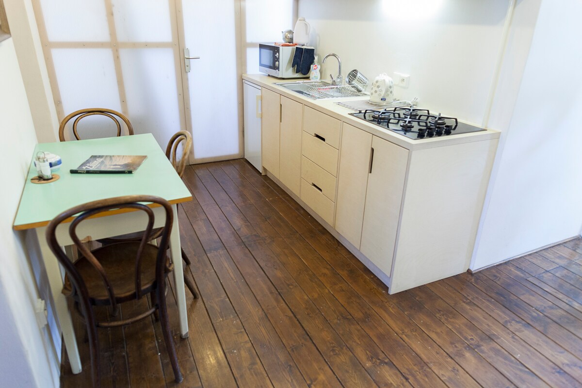Zrekonštruované štúdio sa nachádza v centre mesta v budove na treťom poschodí v podkroví. Štúdio je zariadené tak, aby bola oddelená nočná časť od dennej. Súčasťou štúdia je samostatná kúpeľňa s toaletou. Kuchyňa je vybavená vstavanou chladničkou, indukčnou prenosnou varnou doskou a základným riadom. V kúpeľni sú hosťom k dispozícii uteráky a osušky. V cene ubytovania je aj posteľné prádlo. Do centra sa dostanete peši za 3 minúty. V štúdiu, ako aj v celej budove, je zákaz fajčenia.