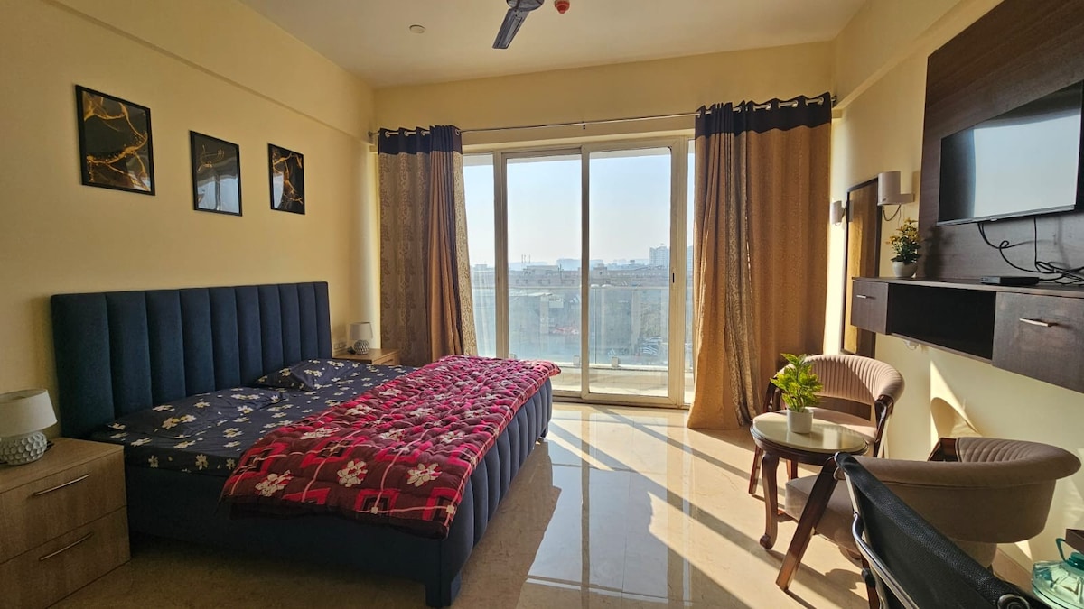 Luxe 3BHK | AC-Cafes-Ntflix-Kitchen-Balc | Nr Airport