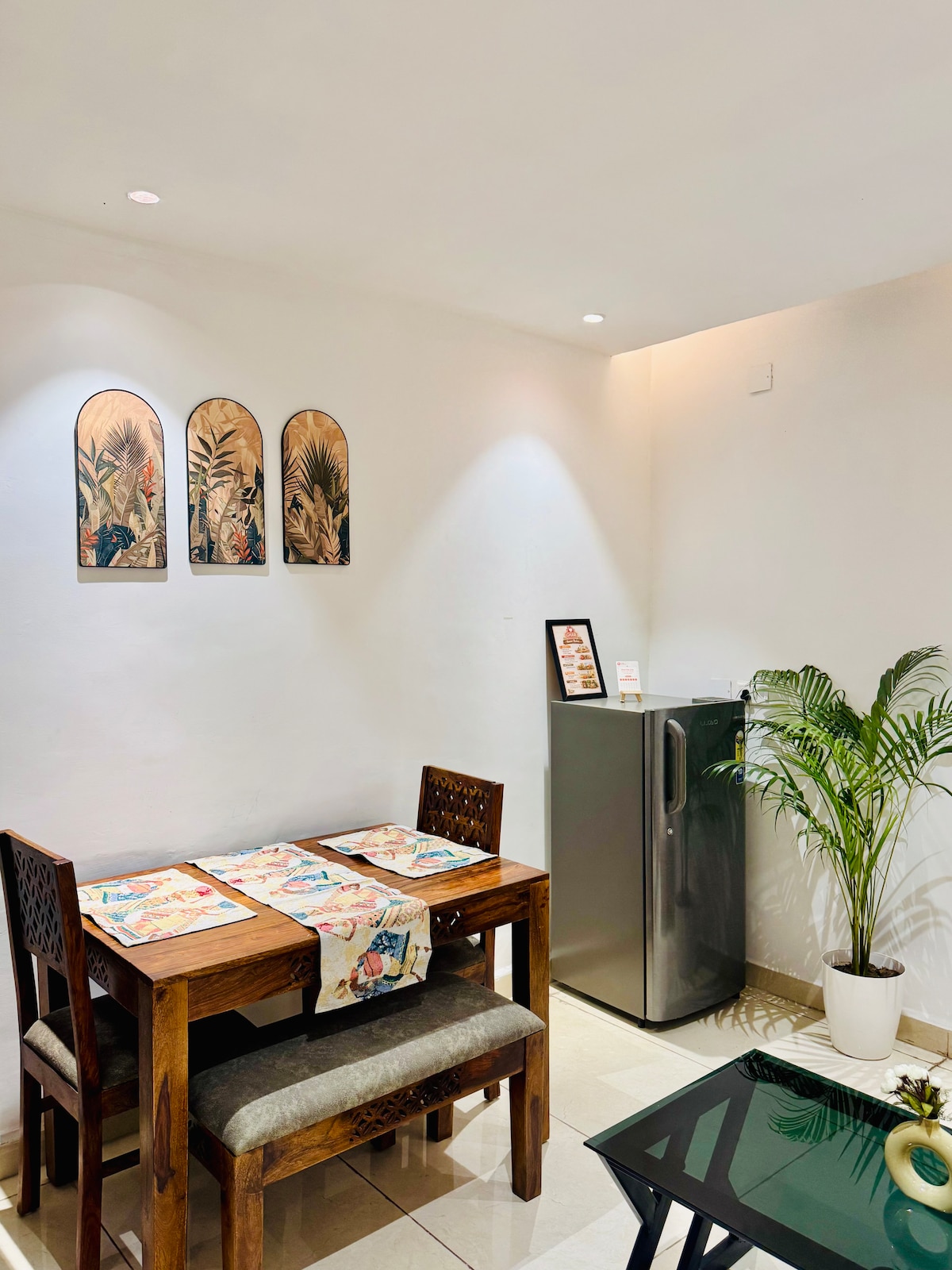 Više o ovom prostoru :) Dobro došli u KaBana by UrbanNest, luksuzni dizajnerski smeštaj sa jednom spavaćom sobom i dnevnim boravkom koji se nalazi u Zirakpuru-Čandigaru. Dizajniran za parove, putnike i goste koji duže borave, ovaj vrhunski apartman spaja udobnost, privatnost i modernu eleganciju. Uživajte u ekskluzivnom privatnom kućnom bioskopu, udobnoj luksuznoj spavaćoj sobi, toplom enterijeru, vrhunskom prostoru za ručavanje i potpuno opremljenoj kuhinji savršenoj za romantična putovanja, poslovne boravke ili opuštajuće izlete.