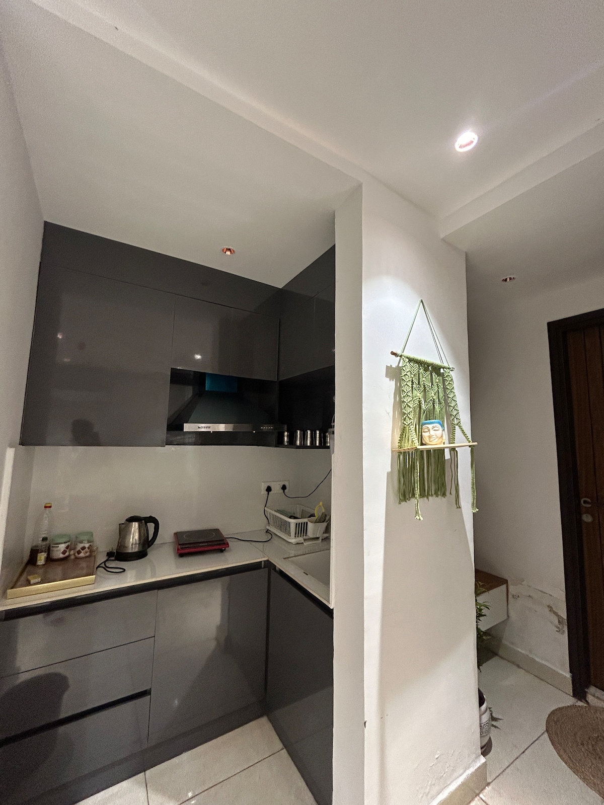 Baan, čije ime potiče od reči „lepo“ na jeziku naroda Pahadi, je topao 1RK dizajniran za nežne, lagodne trenutke. Ima udoban krevet u niši, malu čajnu kuhinju, odabrane umetničke predmete, viseće vinove loze, meko osvetljenje i projektor za filmska veče iz snova. U umirujućim bež i braon tonovima, prostorija spaja smirujuću estetiku sa utešnim detaljima, stvarajući prostor koji deluje intimno, toplo i prelepo spokojno.** 𝒷𝒶𝒶𝓃 — 𝓎𝑜𝓊𝓇 𝒷𝑒𝒶𝓊𝓉𝒾𝒻𝓊𝓁 𝓁𝒾𝓉𝓉𝓁𝑒 𝓇𝑒𝓉𝓇𝑒𝒶𝓉!