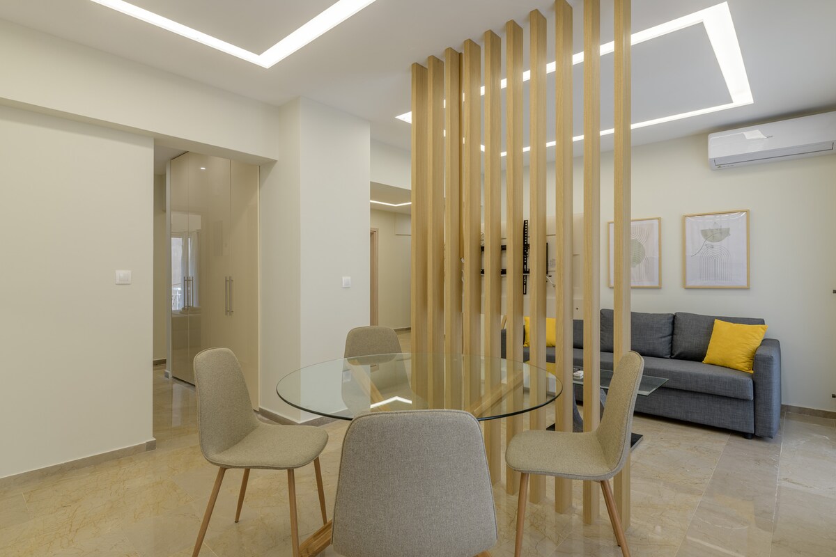 Moderan i svetao stan površine 90 kvadratnih metara, koji se nalazi u Kolonakiju, najelegantnijem i najsigurnijem području Atine. Stan je dizajnirao arhitekta sa jedinstvenim nameštajem i osvetljenjem u običnim linijama, od drveta i pegle, pomešane sa prirodnim tkaninama. Uživajte u luksuzu i udobnosti dok boravite u našoj rezidenciji.