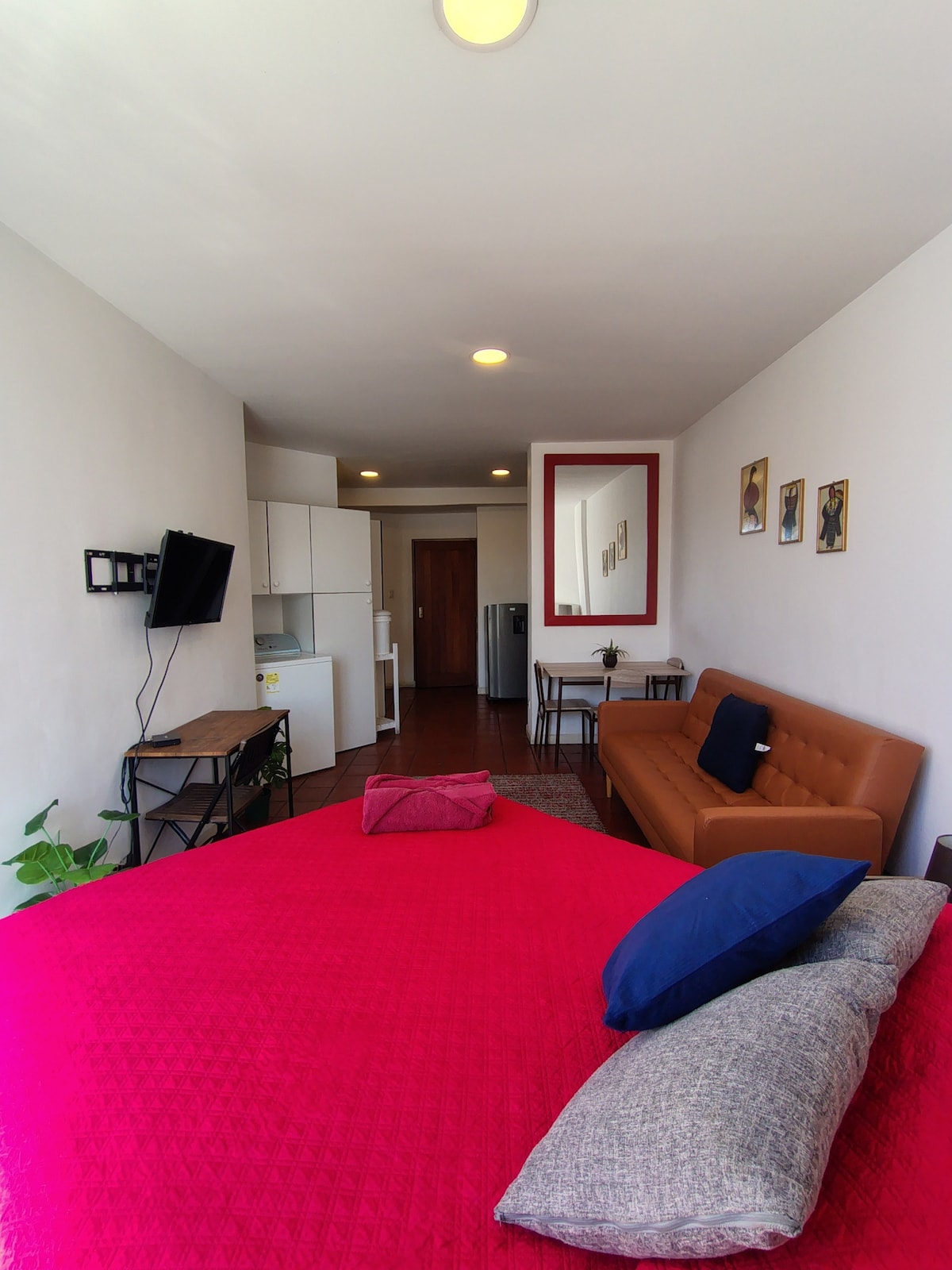 Udoban novi studio u modernom delu grada, komšiluku koji se može prošetati u kulturnom okrugu. Okružen je odličnim restoranima, kafićima, galerijama, muralima. 10 minuta od centra grada, lakim pristupom taksijima, transportnim metroom i biciklističkim stazama. Blizu aerodroma. Potpuno opremljen, sa balkonom i predivnim pogledom na grad, roletne za zamračenje. Bašta na krovu i teretana. Ne uključuje besplatan parking. Pogodno za solo, parove i poslovna putovanja. Vikendi ponekad mogu biti bučni iz klubova u komšiluku.