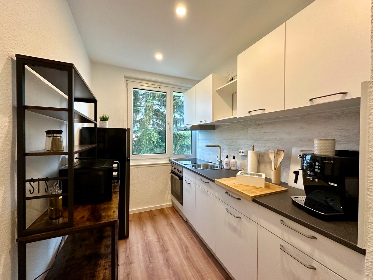 Bez obzira na to da li se radi o odmoru, poslovnom putovanju, sajmu ili smeštaju, u našem novom i moderno nameštenom dvosobnom stanu osećaćete se udobno. Kuhinja, kupatilo, dnevna soba i spavaća soba su potpuno opremljeni i nude prostor za opuštanje 4 osobe na mirnoj lokaciji.